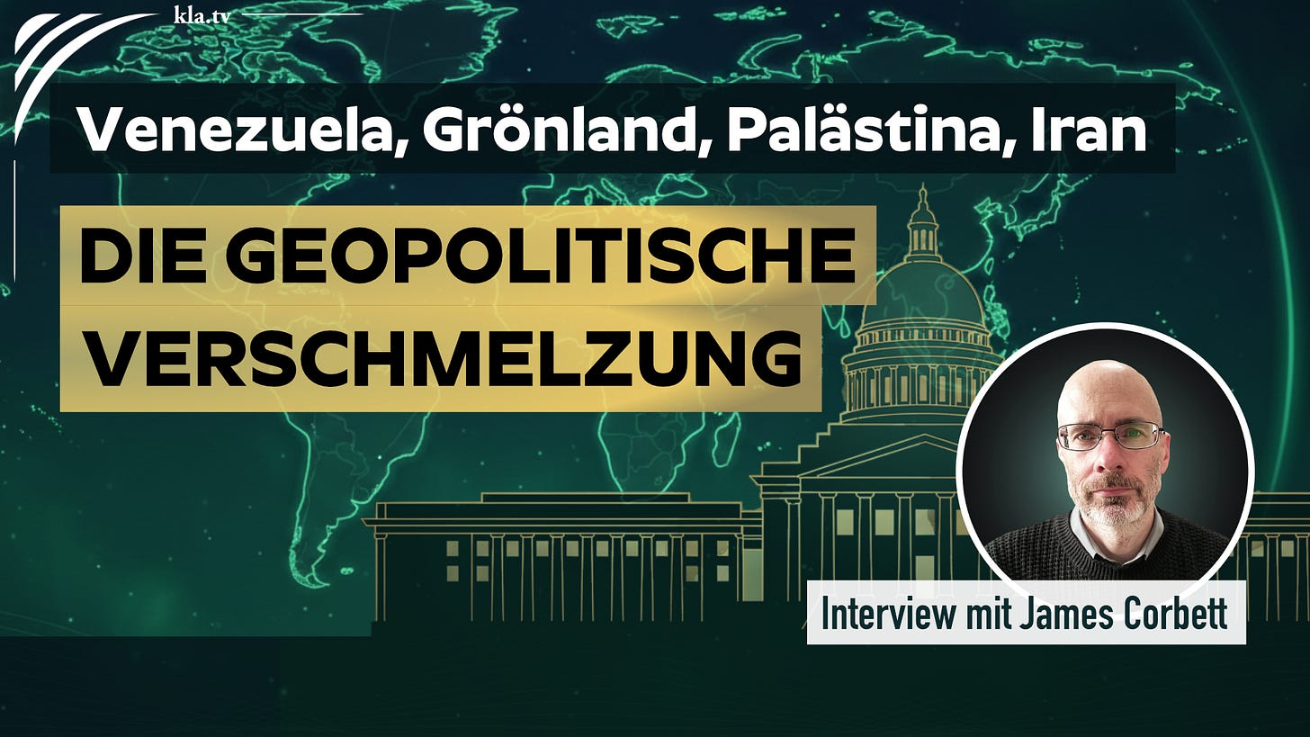 Welches übergeordnete Ziel wird mit der Verhaftung von Präsident Maduro und dem Wirtschaftskrieg der USA gegen Kuba erreicht? Was steckt hinter der Aggression gegen den Iran und Palästina? Der investigative Journalist James Corbett beantwortet diese und weitere Fragen im brandaktuellen Kurzinterview mit Kla.TV.